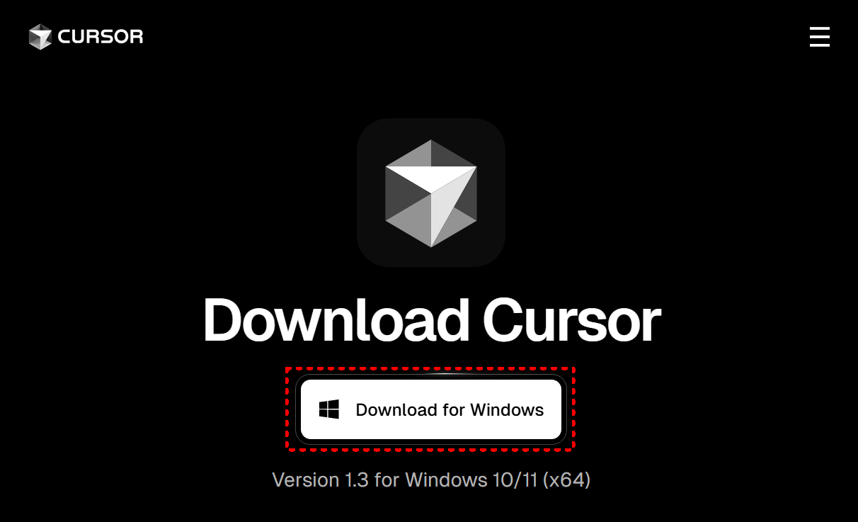 - 홈페이지 상단 또는 메인 화면의 “Download” 또는 “Get Cursor” 버튼을 클릭합니다.