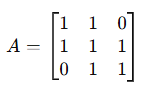 인접행렬 A와 차수 행렬 D가 아래와 같이 있다고 가정합니다.