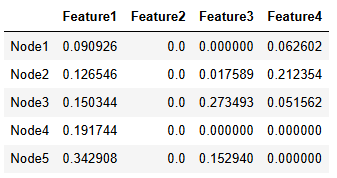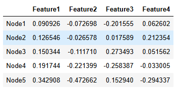 행은 각 노드의 특징량, 열은 특징을 나타내는 일반적인 머신러닝의 테이블 정보입니다.