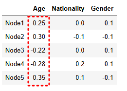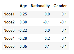 기계학습에서는 각 노드는 성별, 국적, 나이등의 특징량을 가지고 있습니다.