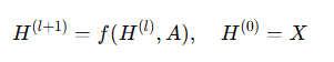 f(H(0), A) = f(X, A) = φ(AX · W )