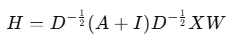 이 수식은 그래프 구조와 특징을 통합하는 GCN의 핵심 아이디어 입니다.