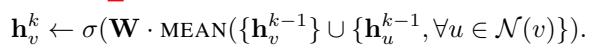 5. h_v^(k) ← σ(W_k · CONCAT(h_v^(k-1), h_N(v)^(k)))